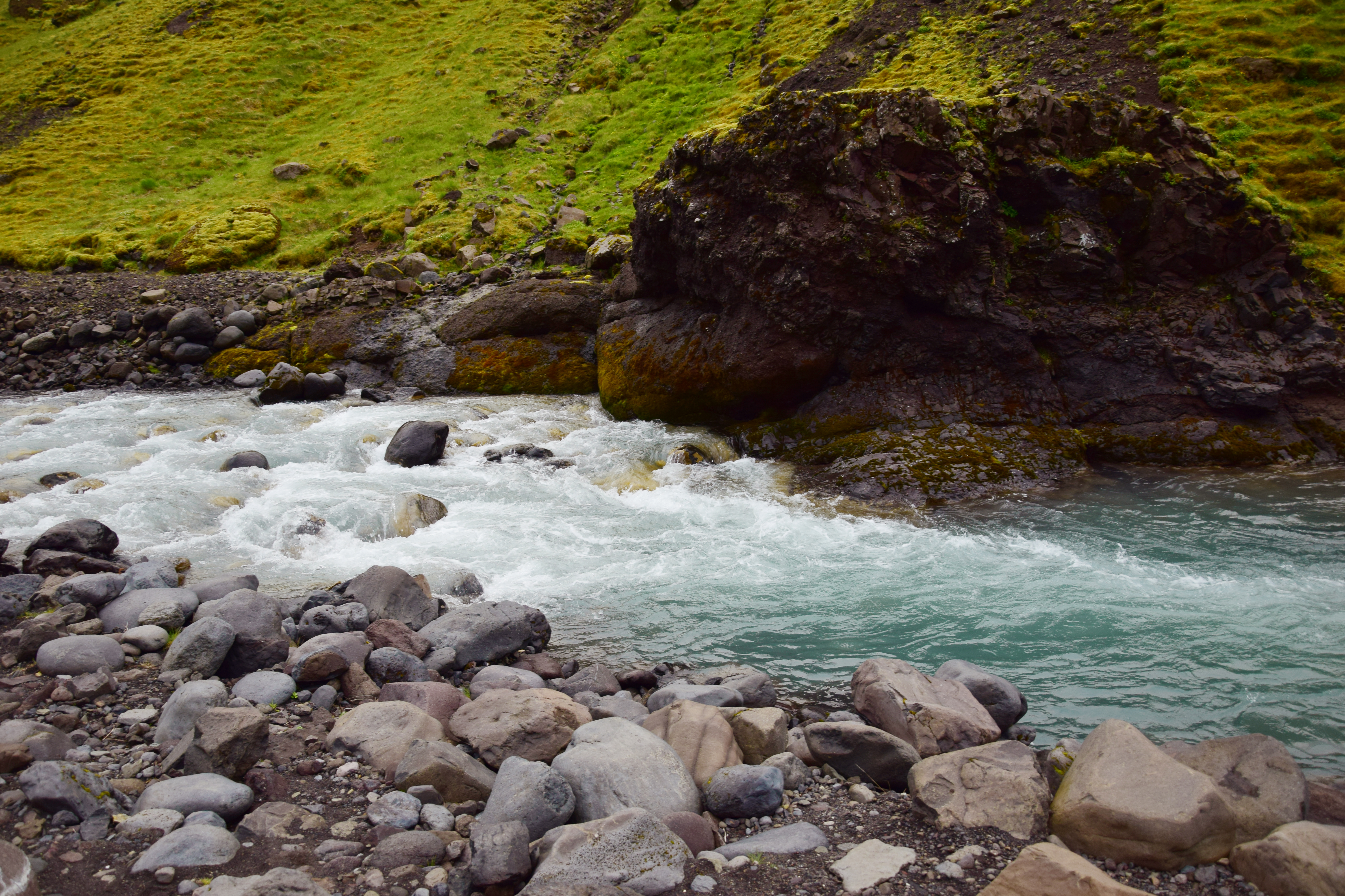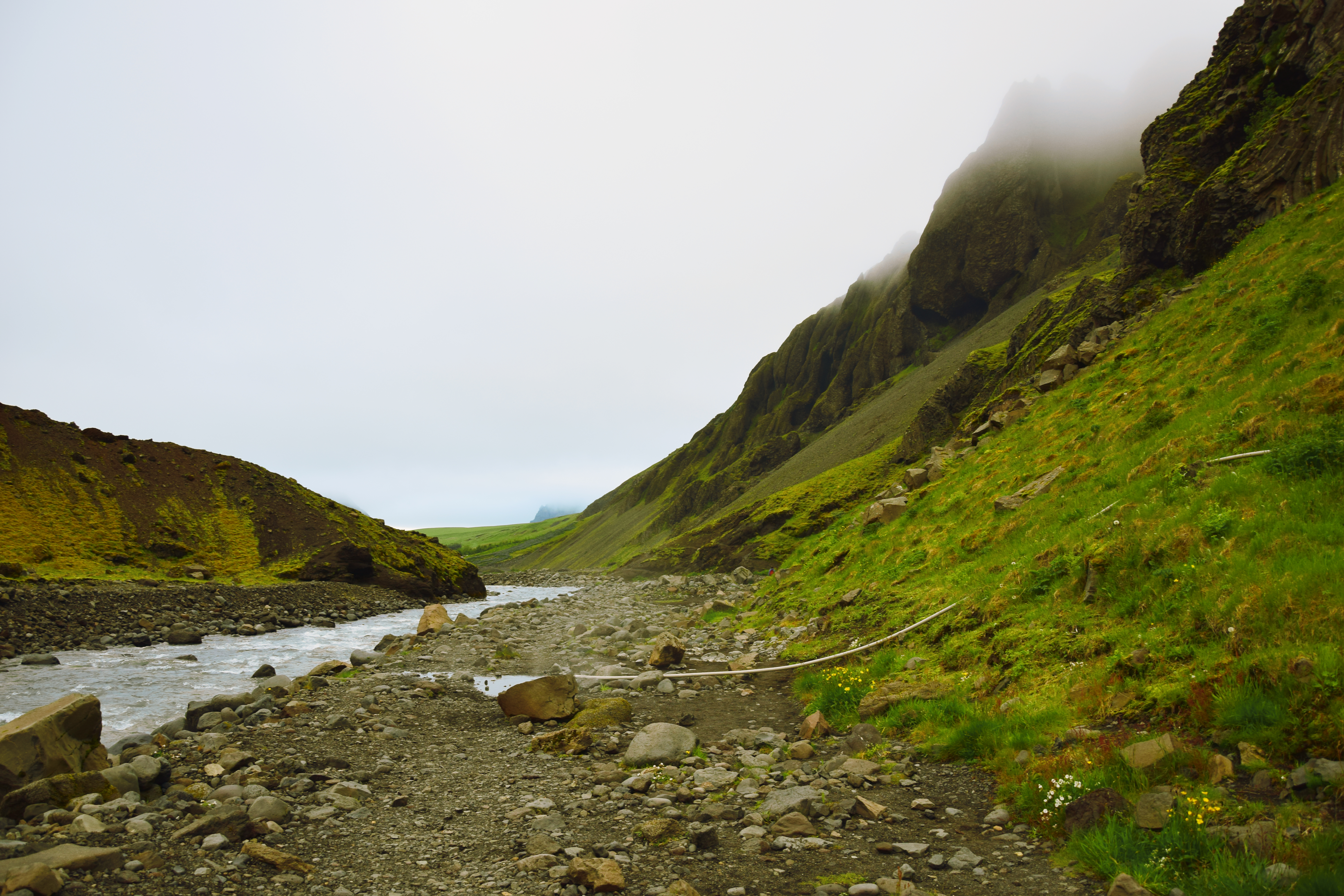 Skogar, Iceland/ The beautiful path leading to the natural geothermal pool Seljavallalaug. / Klidná cesta vedoucí k přírodnímu geotermálnímu bazénu Seljavallalaug uprostřed isladnské přírody.