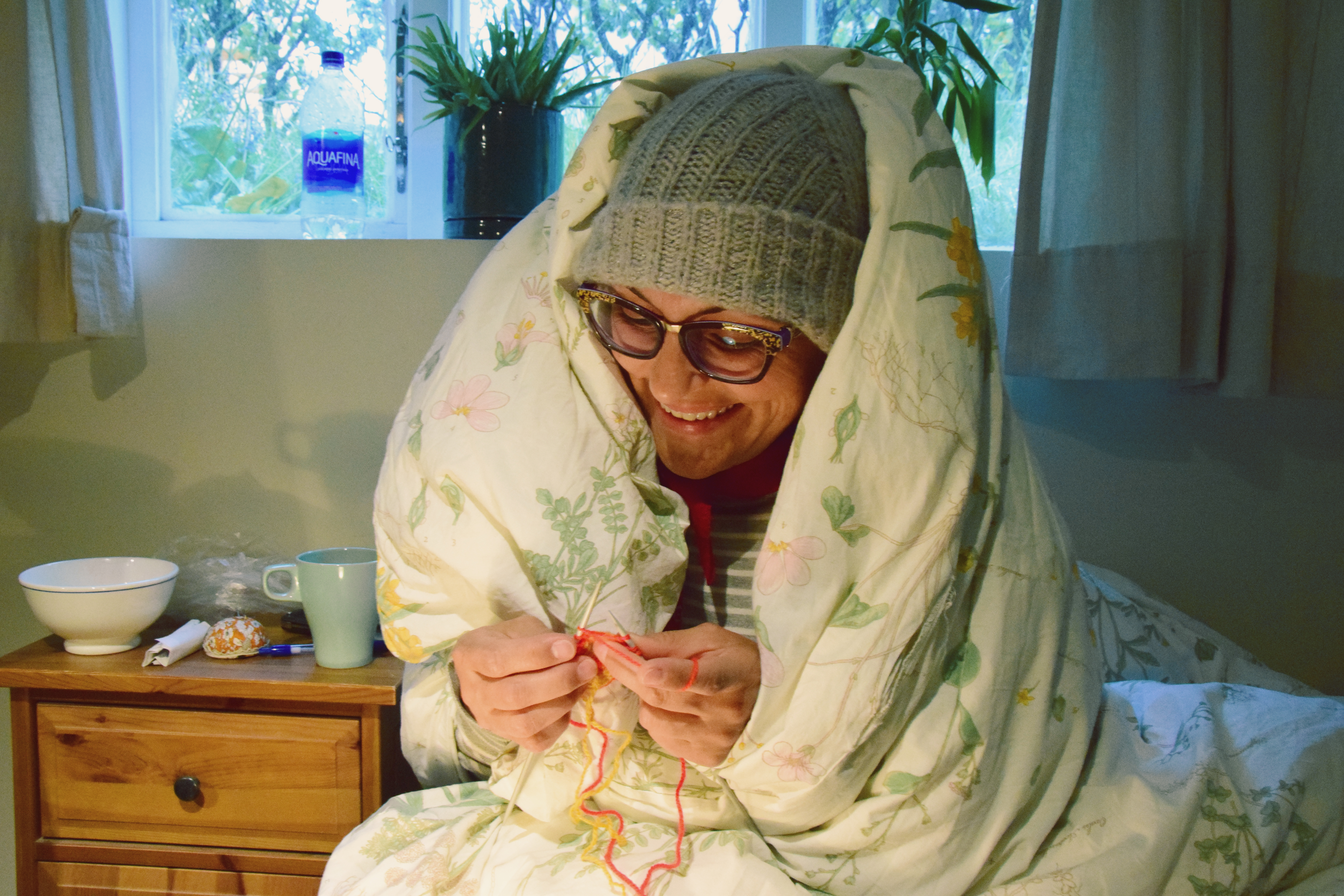 Pletení po večech zakutané v peřině byl konec dne, na který jsme se vždycky těšily. Koneckonců jsme zastihly jedny z nejdelších dnů na ostrově a měly jsme světlo až do půlnoci! Tak jsme na to perfektně viděly. / Ending every adventurous day with an evening „snuggle up in blankets and knitting“ kind of session.