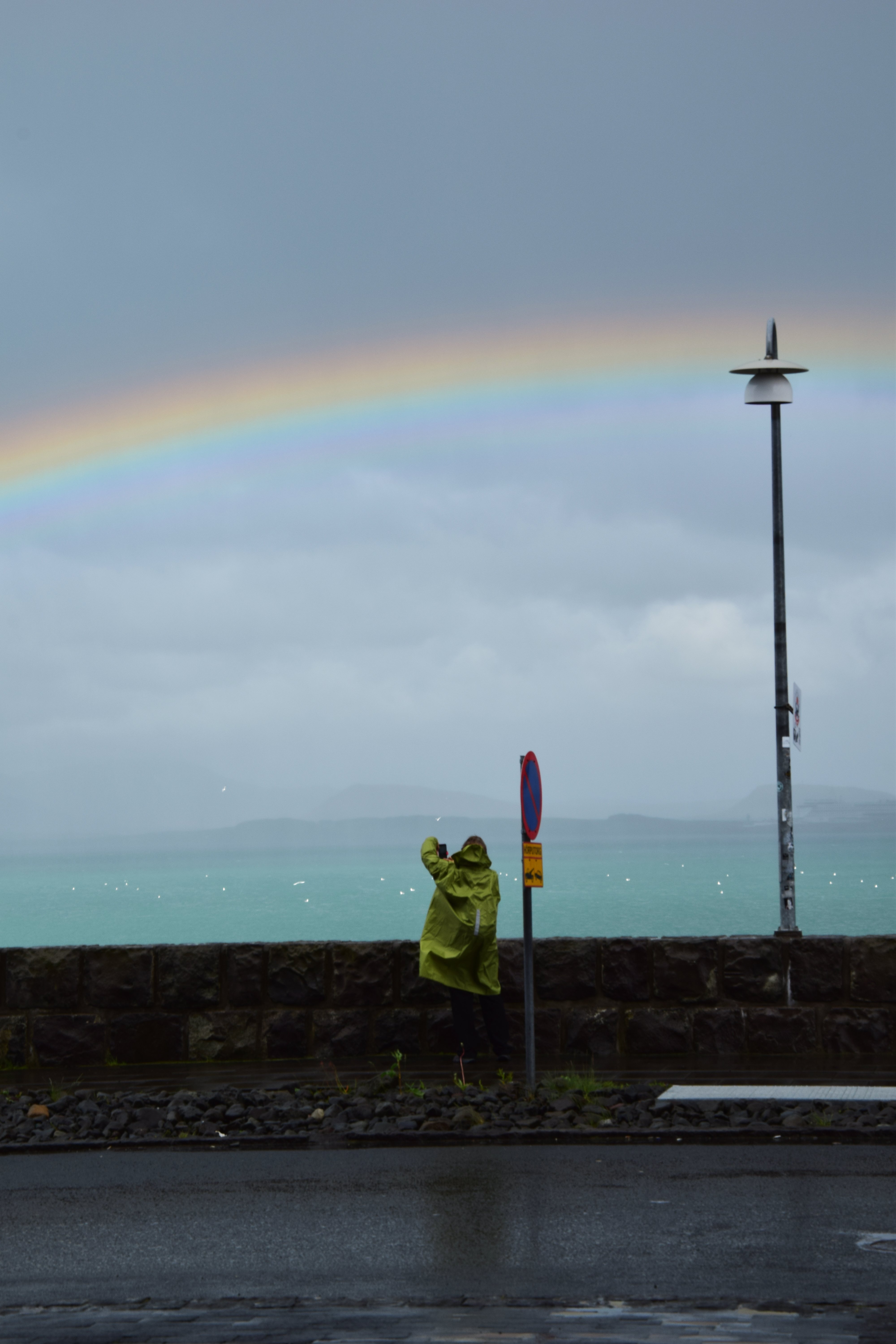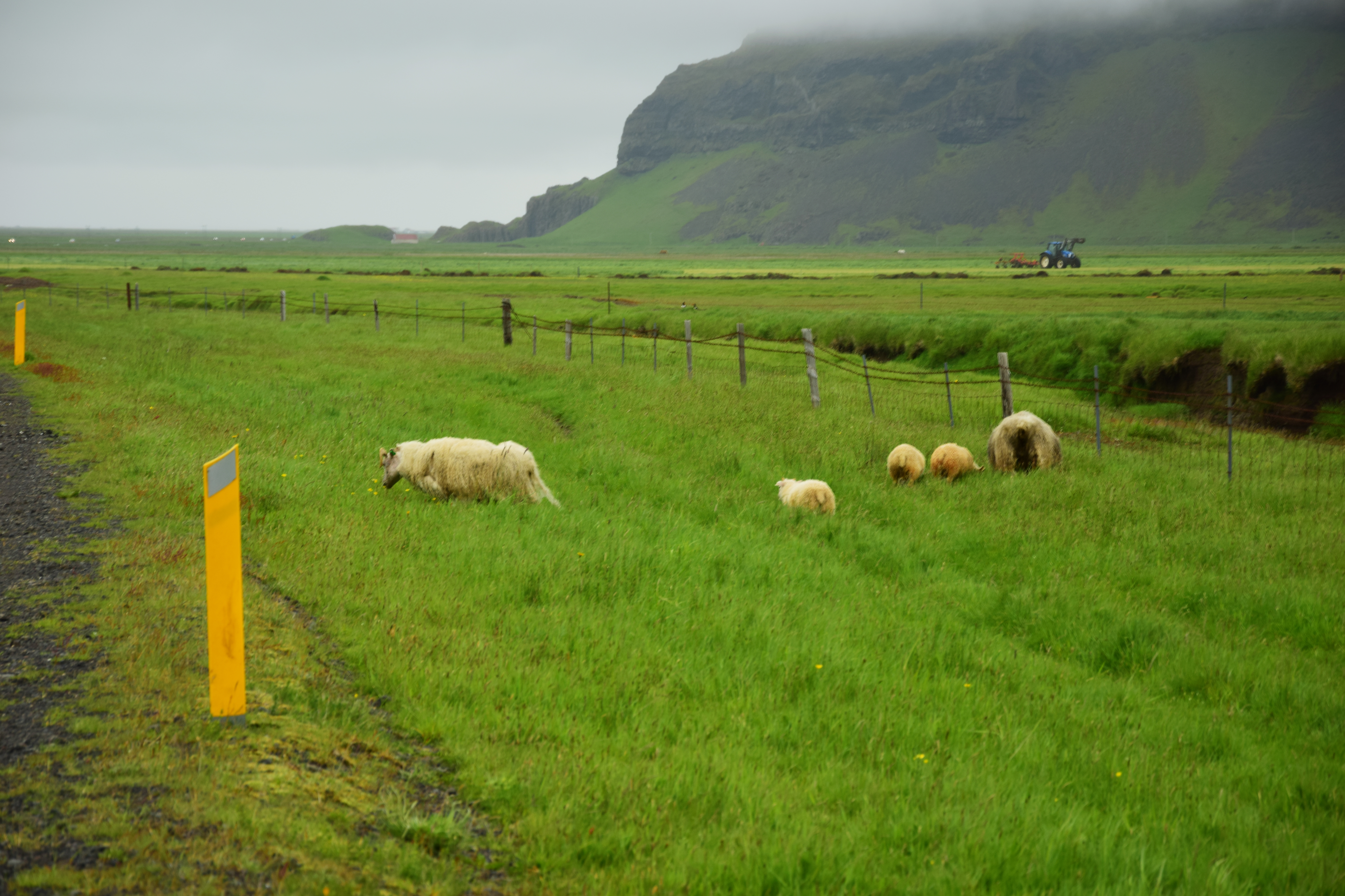 Hodiny na cestách nejsou pruda, ale zážitek.! Za okny se totiž míhá nekonečně krásné zeleno, na okna dopadá lehký déšť, na konci cesty se objeví duha. A tak stačí jen sedět a divit se, sedět a koukat. / Spending hours driving is not boring as you might think – Iceland is so precious no matter where you drive and even just looking out the window and seeking some sheep or admiring rainbows leaves you with no words but „how?“.