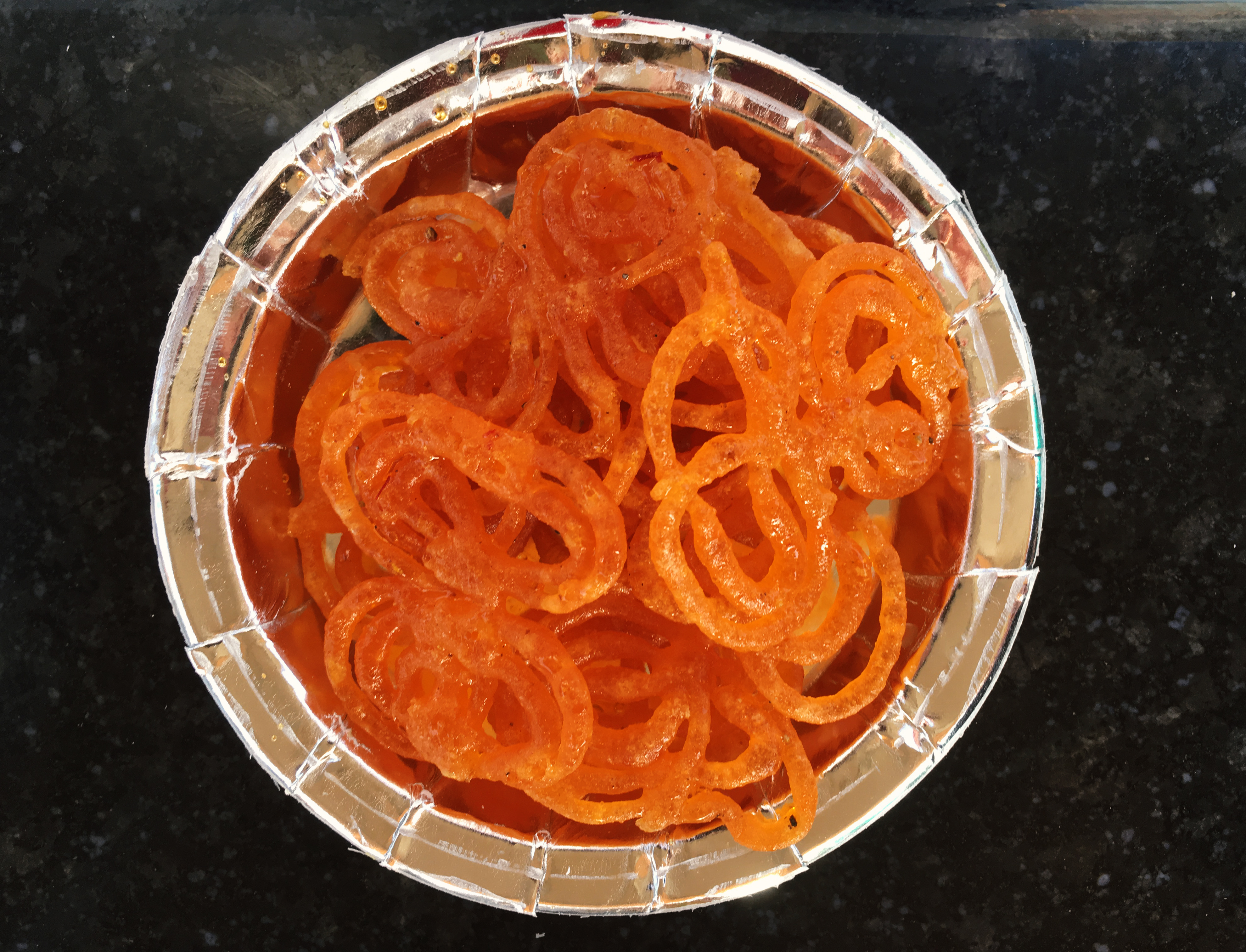 Jalebi, za ně šla bych světa kraj. Jedna z nejčastějších sladkých dobrot v Indii, zase takoví všudybudové. Tentokrát jsou to jakýsi sirupoví preclíčci. Osmažení, samozřejmě. 11/10