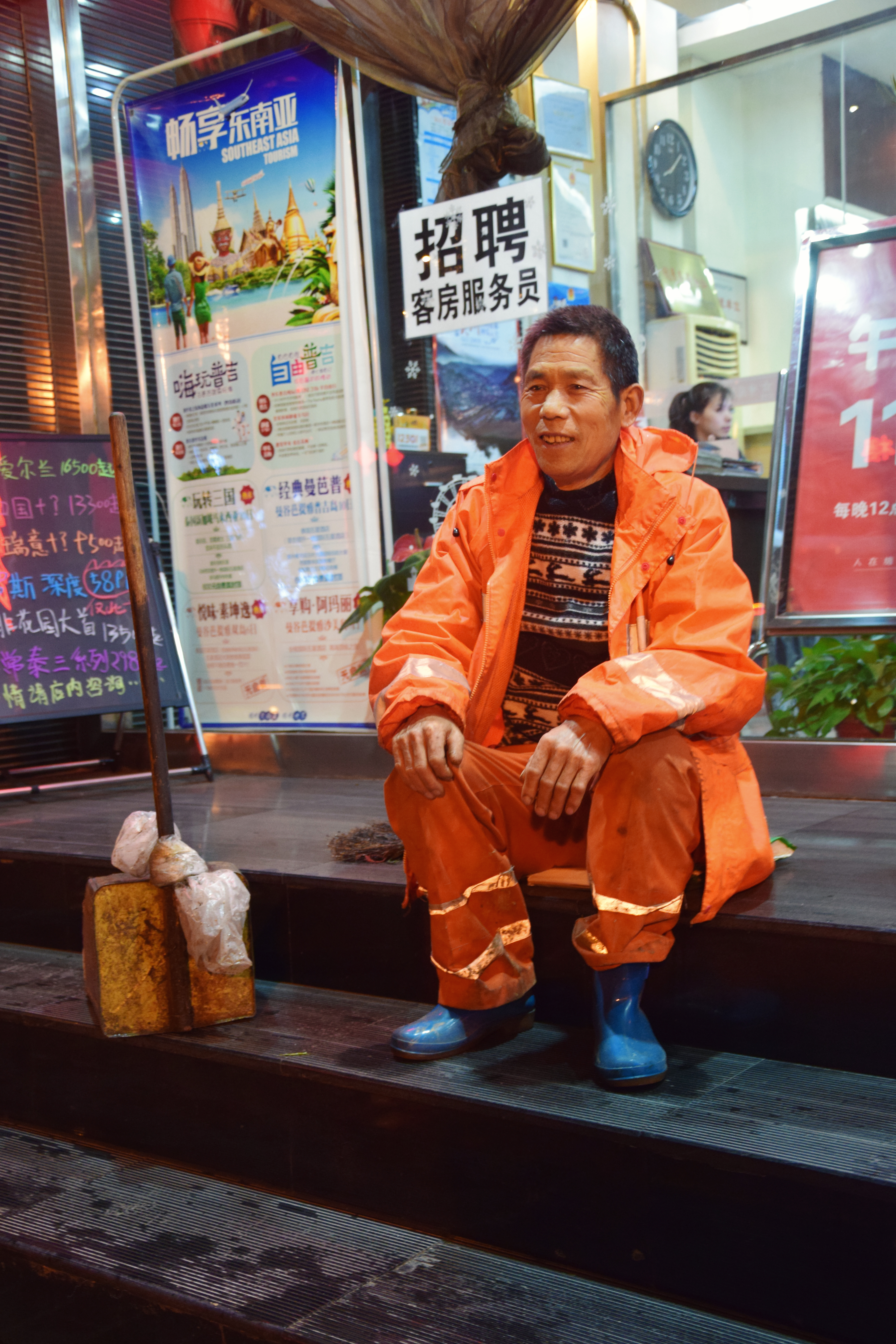 noční Xi´an, vysmátý pán v oranžové